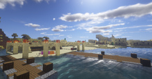 • Власне, порт. Поруч з берегом було занадто мілко для великих кораблів, тому два причали було збудовано з розрахунком на човни і невеличкі судна. Поруч був склад, всередині і поруч з ним постійно лежала купа різноманітних товарів які були отримані з допомогою, або використовувались для торгівлі. І сторожова курка. Вона теж там була.